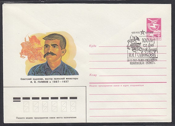 ХМК со спецгашением - 100 лет со дня рождения И.И. Голикова, Палех УС 6.01.1987 год