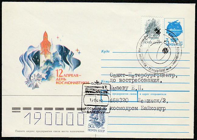 ХМК со спецгашением. 12 апреля - день космонавтики, 12.04.1992 год, космодром Байконур, прошёл почту