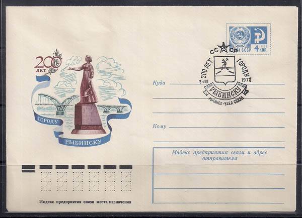 ХМК со спецгашением. 200 лет городу Рыбинску, 03.08.1977 год, Рыбинск узел связи