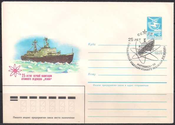 ХМК со спецгашением 25 лет с начала первой навигации атомного ледокола "Ленин" , 03.12.1984 год, Мурманск