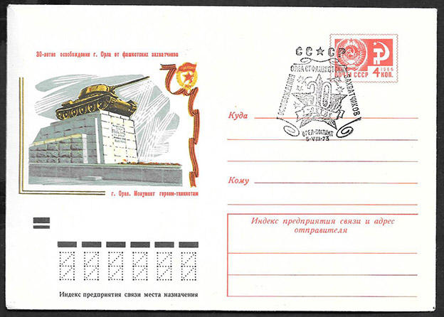 ХМК со спецгашением - 30 лет освобождения Орла от фашистов, 1973 год