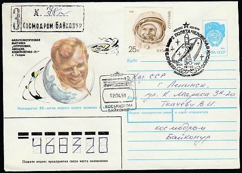 ХМК со спецгашением. 30 лет первому полёту человека в космос, 12.04.1991 год, Байконур, прошёл почту (+1Ю)