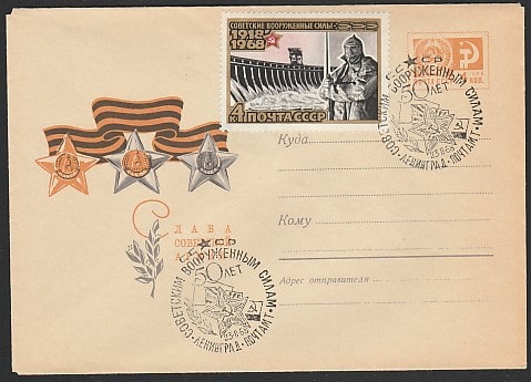 ХМК со спецгашением. 50 лет Советским Вооружённым Силам, 23.02.1968 год, Ленинград, почтамт (V)