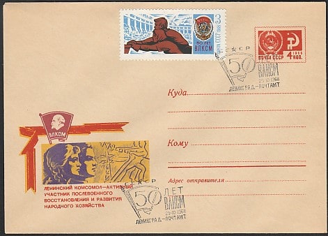 ХМК со спецгашением. 50 лет ВЛКСМ, 29.10.1968 год, Ленинград, почтамт