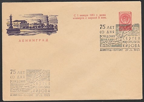ХМК со спецгашением. 75 лет со дня рождения С.М. Кирова, 27.03.1961 год, Ленинград, почтамт