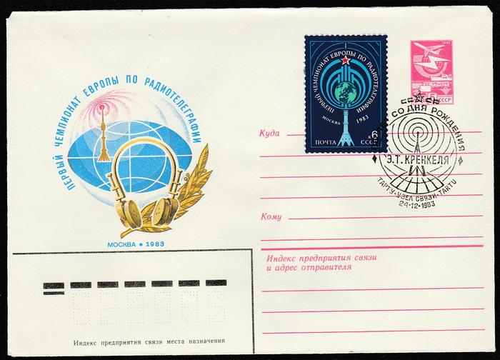 ХМК со спецгашением. 80 лет со дня рождения Э.Т. Кренкеля. 24.12.83 г. Тарту.