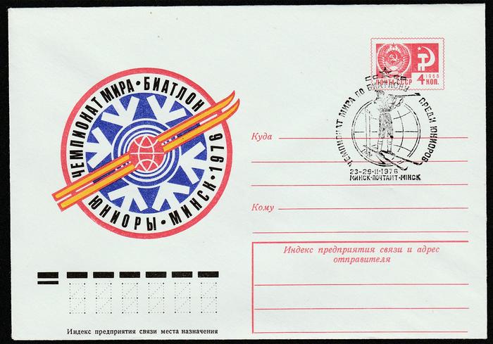 ХМК со спецгашением. Чемпионат Мира по биатлону среди юниоров. 23-29.02.76 г. Минск.