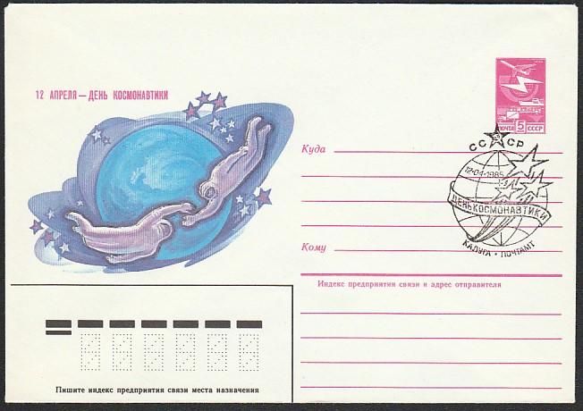 ХМК со спецгашением. День космонавтики, 12.04.1985 год, Калуга (Ю)
