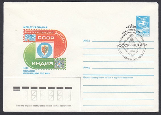 ХМК со спецгашением - Филвыставка "СССР - Индия", Киев 26.06.-06.07.1986 год