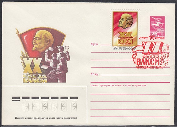 ХМК со спецгашением - ХХ съезд ВЛКСМ, Москва 15-18.04.1987 год