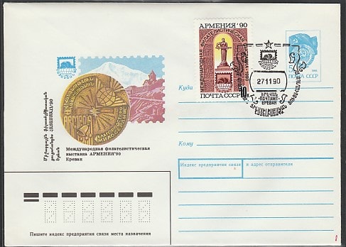 ХМК со спецгашением. Международная филвыставка "Армения-90", 27.11.1990 год, Ереван, почтамт (Ю)