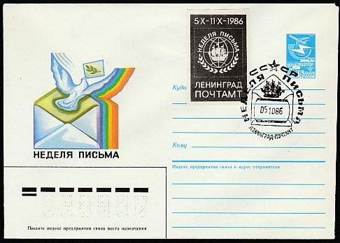 ХМК со спецгашением. Неделя письма, 05.10.1986 год, Ленинград, почтамт