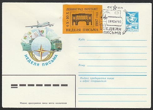 ХМК со спецгашением. Неделя письма, 06.10.1987 год, Ленинград, почтамт