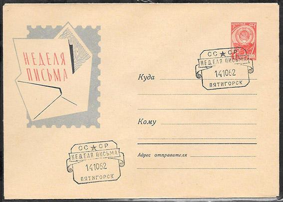 ХМК со спецгашением - Неделя письма. Пятигорск. 1962 год