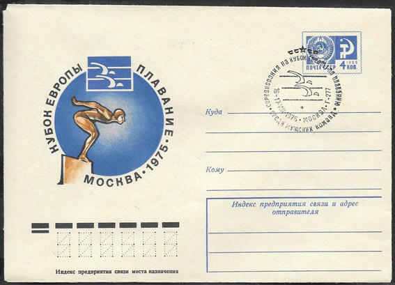 ХМК со спецгашением - Соревнования на кубок Европы по плаванию. Москва. 1975 год