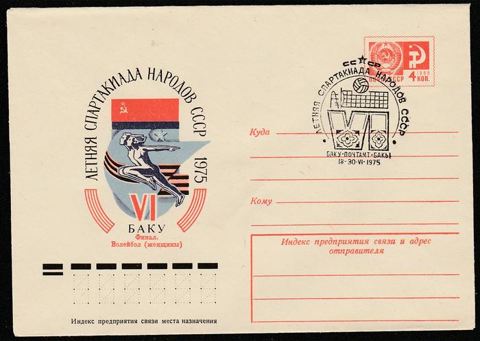 ХМК со спецгашением. VI летняя Спартакиада народов СССР. 18-30.06.1975 г. Баку.
