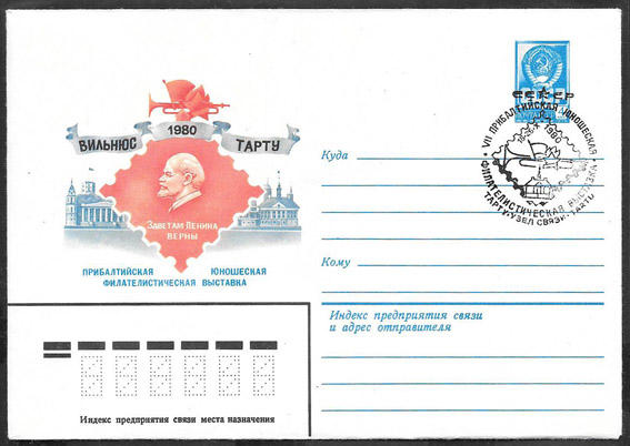 ХМК со спецгашением - VII Прибалтийская юношеская филвыставка. Тарту. 19-31,5,1980 год