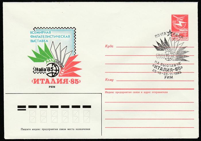 ХМК со спецгашением. Всемирная филвыставка "Италия-85". 25.10.-03.11.1985 г. Рим.