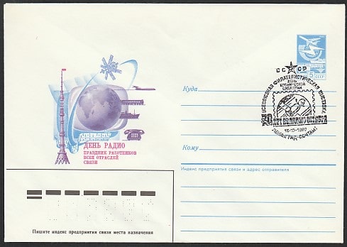 ХМК со спецгашением. Всесоюзная филвыставка. День космической филателии, 18.10.1987 год, Ленинград, почтамт (+1Ю)