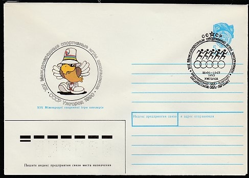 ХМК со спецгашением. XIX Международные игры школьников, (попугай), 30.06-03.07.1990 год, Ужгород, почтамт (Ю)