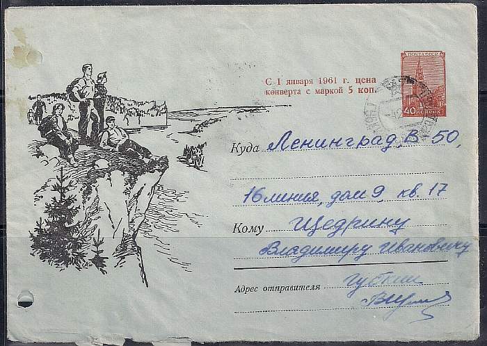 ХМК. Туристы на привале, 1960 год, № 60 - 276, переоценка, прошел почту