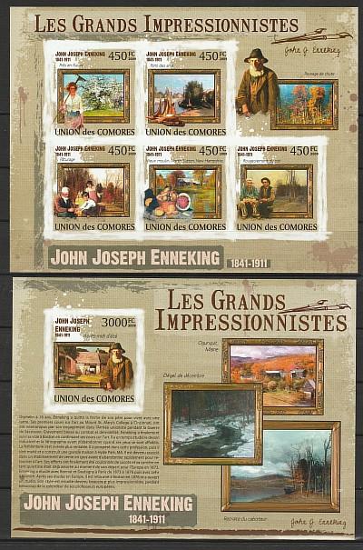 Импрессионисты, Джон Эннекинг, Коморы 2009 год, малый лист + блок без зубцов
