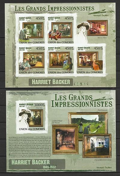 Импрессионисты, Гарриет Баккер, Коморы 2009, мал.лист + блок без зубцов