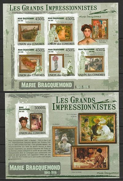 Импрессионисты, Мари Бракемон, Коморы 2009, мал.лист + блок без зубцов