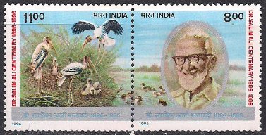 Индия 1996 год. 100 лет со дня рождения орнитолога Салим Али. 2 марки