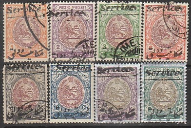 Иран 1911 год. Стандарт. Герб, ндп, 8 служебных марок (гашёные)