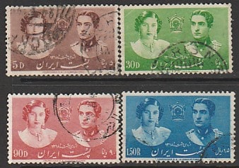 Иран 1939 год. Свадьба наследника престола. Мохаммед Реза Пехлеви и принцесса Фавзия Фуад, 4 марки из серии (гашёные) (б/1-й) (39,5/4,2)