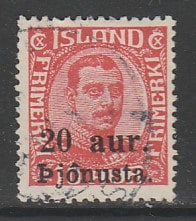 Исландия 1923 год. Стандарт. Датский король Кристиан X, 1 служебная марка с надпечаткой (гашёная) (70/2)