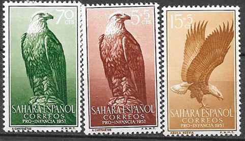 Испанская Сахара 1957 год. Орлы. 3 марки