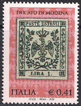 Италия 2002 год. 150 лет первой почтовой марке Модены (146.2850). 1 марка