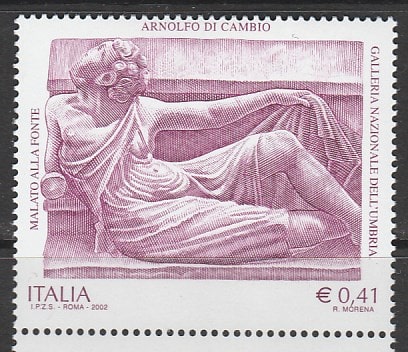 Италия 2002 год. Скульптура Арнольфо ди Камбио "Больной у источника", 1 марка.