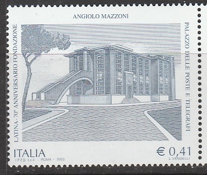 Италия 2003 год. Почта и телеграф работы архитектора Анджоло Маццони, 1 марка.