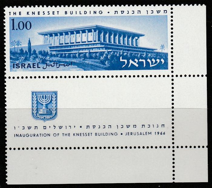 Израиль 1966 год. Здание Кнессета в Иерусалиме. 1 марка с купоном