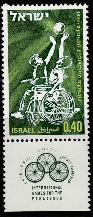 Израиль 1968 год. Спортивные игры для инвалидов. 1 марка с купоном