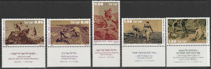Израиль 1976 год. Первопроходцы. 5 марок с купонами