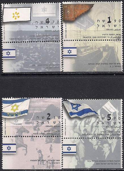 Израиль 2003 год. История национального флага Израиля. 4 марки с купоном