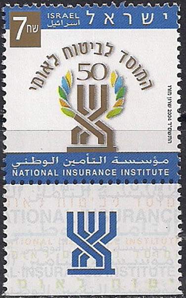 Израиль 2004 год. 50 лет Национальному институту страхования Израиля. 1 марка с купоном