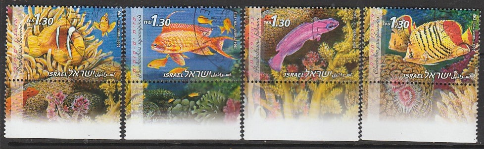 Израиль 2004 год. Рыбы Красного моря, 4 марки с купоном (гашёные)