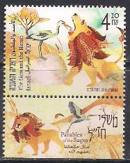 Израиль 2016 год. Сказка "Лев и цапля" (ном. 4). 1 марка с купоном из серии