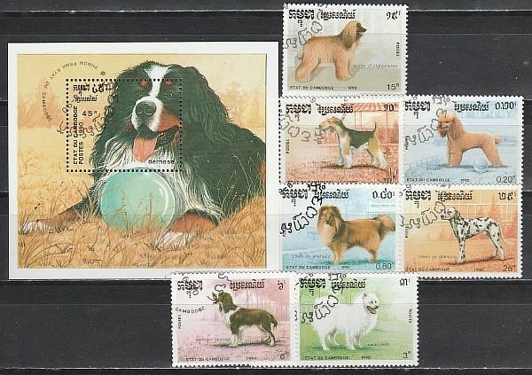 Камбоджа 1990 год, Собаки, 7 гашёных марок+блок