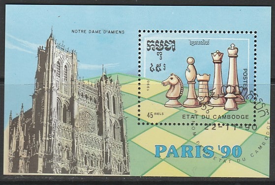 Камбоджа (Кампучия) 1990 год. Чемпионат мира по шахматам в Париже, блок (гашёный)