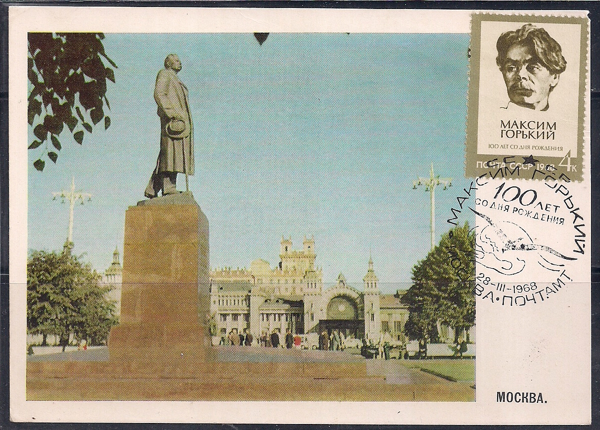 Картмаксимум. 100 лет со дня рождения М. Горького 28.03.1968 год, Москва почтамт