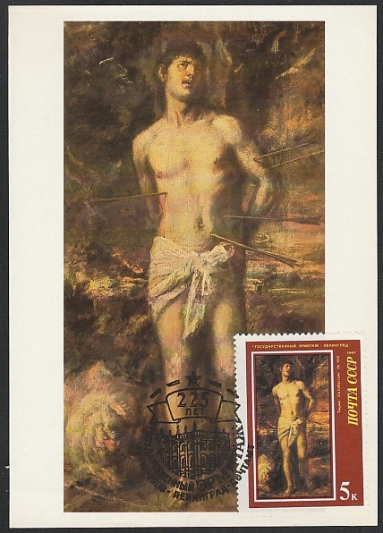 Картмаксимум. 225 лет Государственному Эрмитажу. Картина Тициана "Святой Себастьян", 17.10.1989 год, Ленинград, почтамт