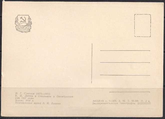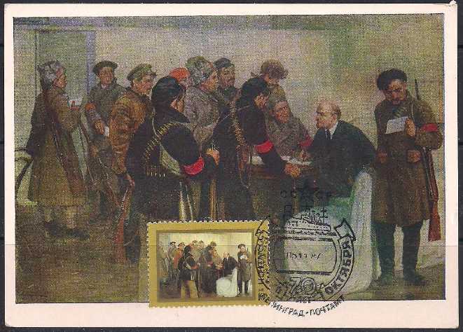 Картмаксимум. 70 лет Великого Октября, М. Соколов "В.И. Ленин в Смольном", 05.11.1987 год, Ленинград почтамт