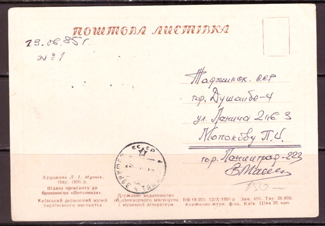 Картмаксимум 80 лет восстания на броненосце Потемкин, прошел почту 14.06.1985 год