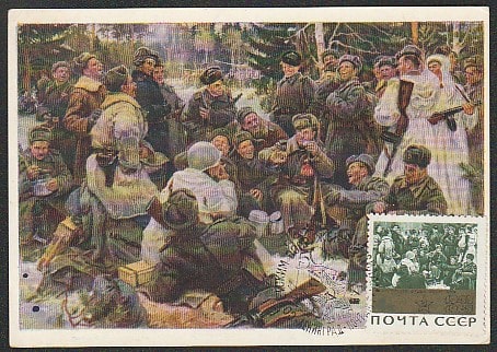Картмаксимум. Фрагмент картины "Отдых после боя", 23.02.1968 год, Ленинград, почтамт.